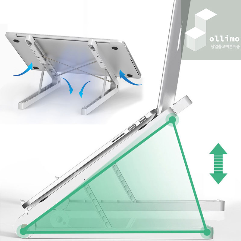 Ollimo 휴대용 6단계 노트북 접이식 거치대 받침대 브라켓 폴딩쿨러 각도조절