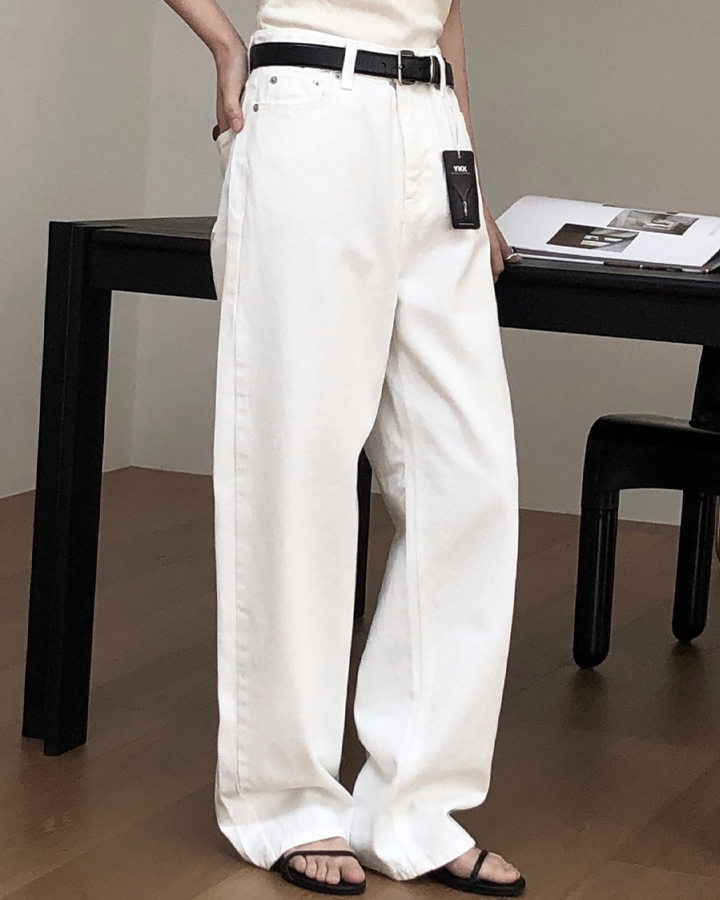 르버터 클래식 뮤 데님 블랙 화이트 통일자 코튼 여성 스트레이트 와이드 팬츠(88040)