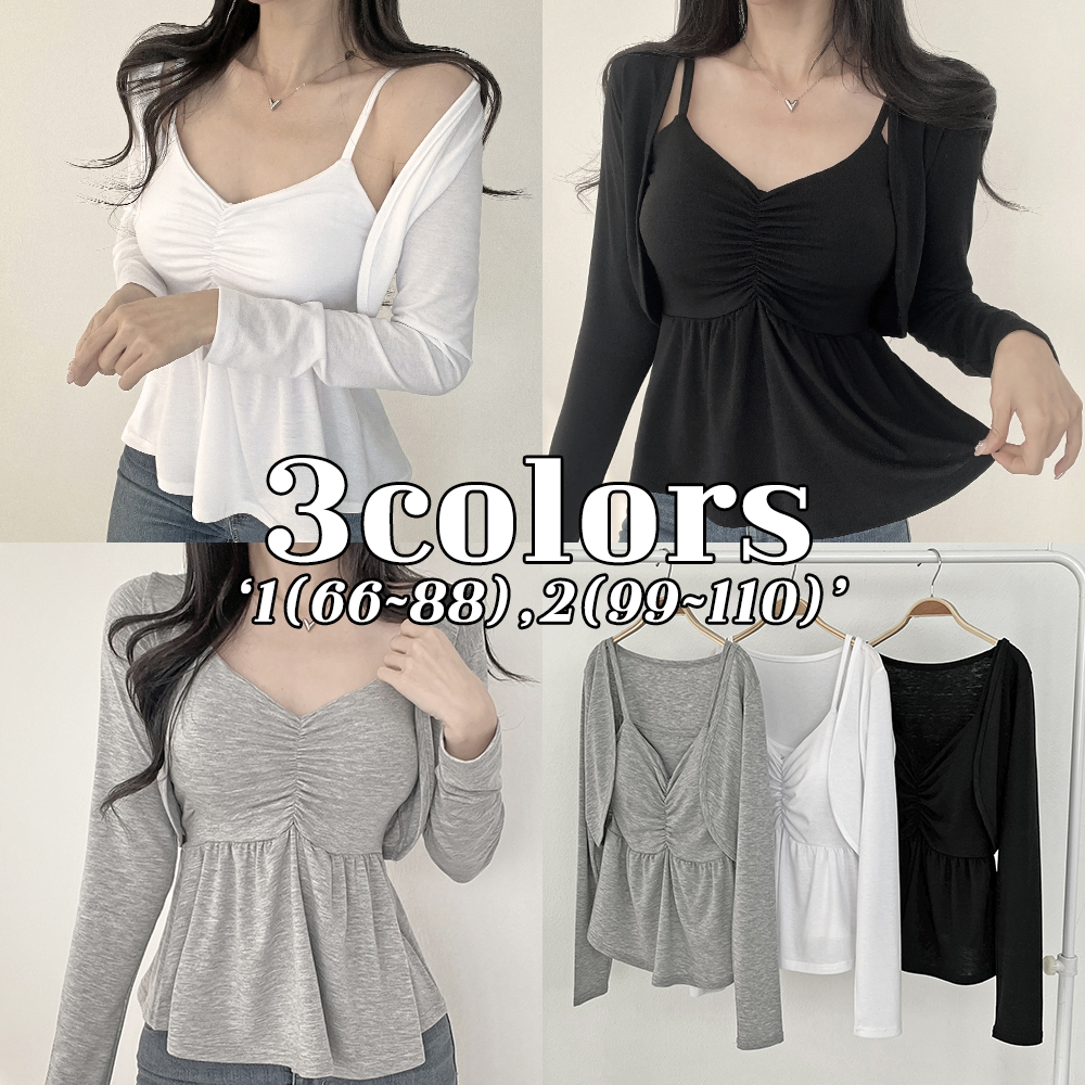 군살쉐딩핏👍뱃살커버💖패드탈부착[자체제작🚛당출/잘록허리] 빅사이즈 글램핏 크롭 가디건 &셔링 플레어 나시티셔츠 세트(472)상체보정 꾸안꾸 여리핏 가슴패드 페미닌 봄가을 아우터
