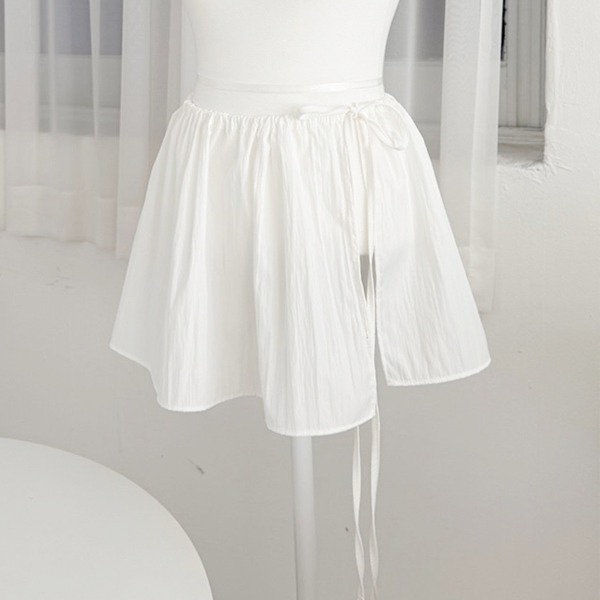 레이어링 코튼스커트)끈조절/레이어드스커트/코디용스커트/레이어드치마/미니스커트/미니치마/허리밴딩/화이트/흰색/트임/리본끈