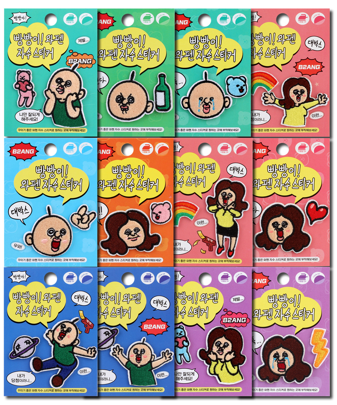 빵빵이 와펜 자수 스티커(12개)/패션소품 가방 옷 DIY 꾸미기