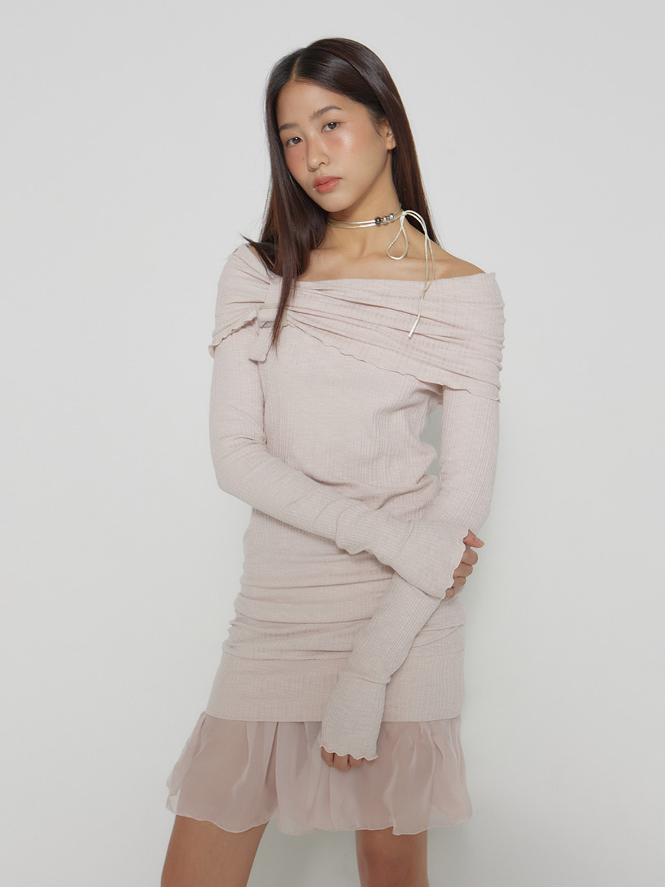 MONA BELTED OFF-SHOULDER DRESS - PINK