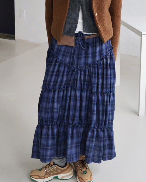 보타나 체크 롱 스커트