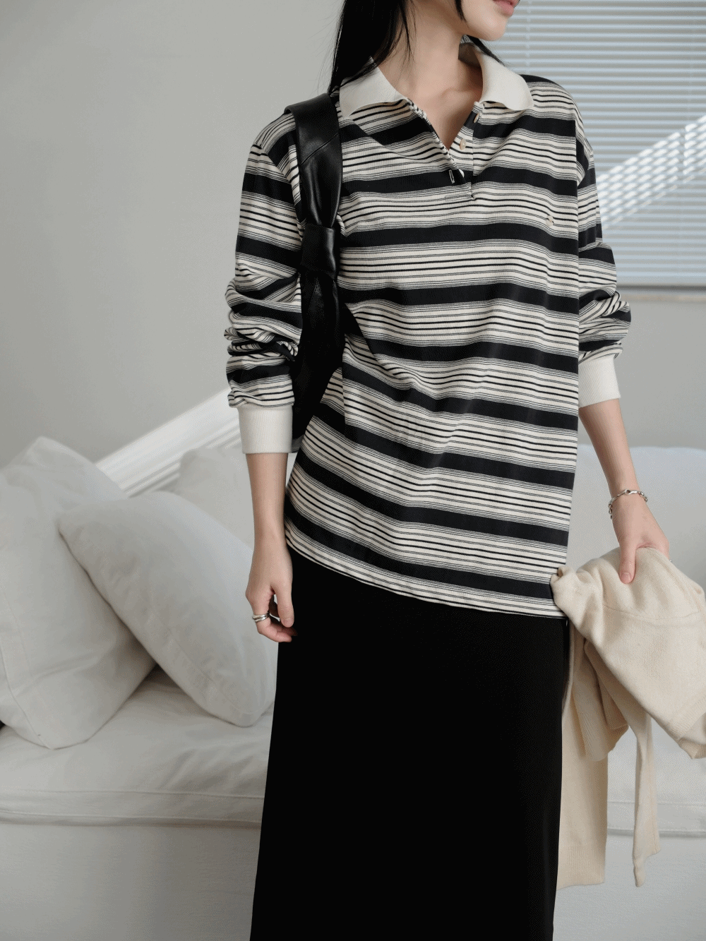 루네즈 스트라이프 럭비 카라 티_Lunez t-shirt