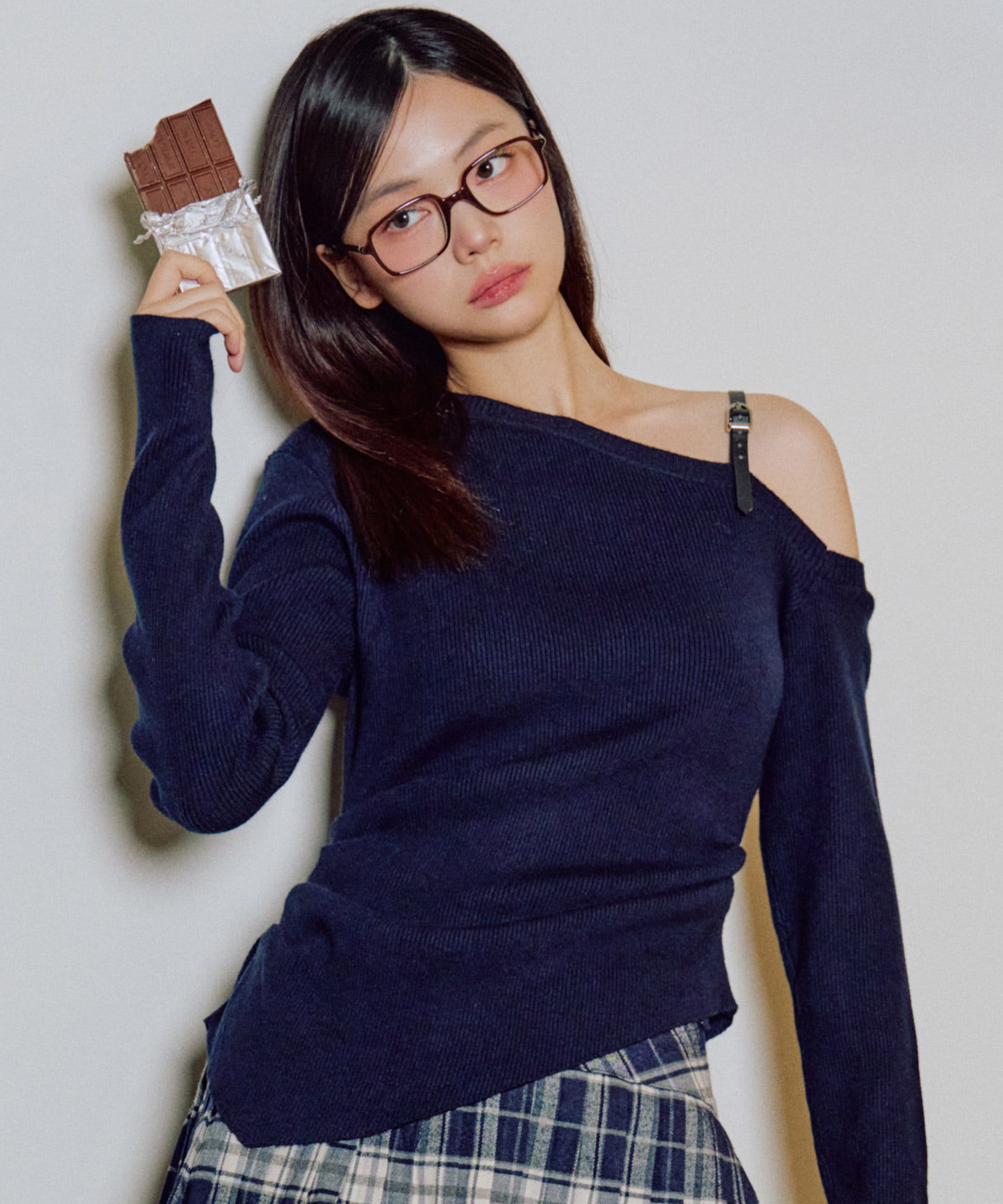 엘로이즈 버클 언밸런스 니트 [NAVY]