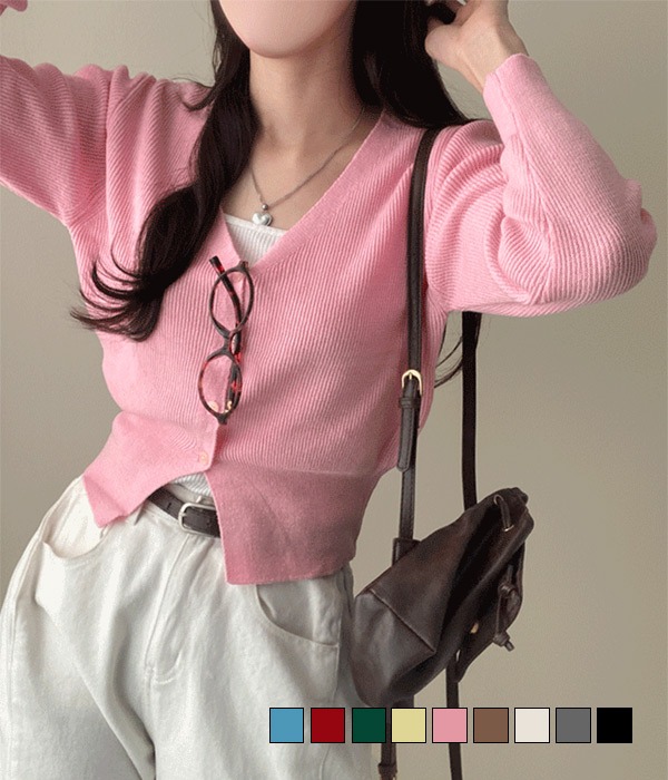 [무료배송] 버니 허리잘록 하찌 브이넥 트임 가디건