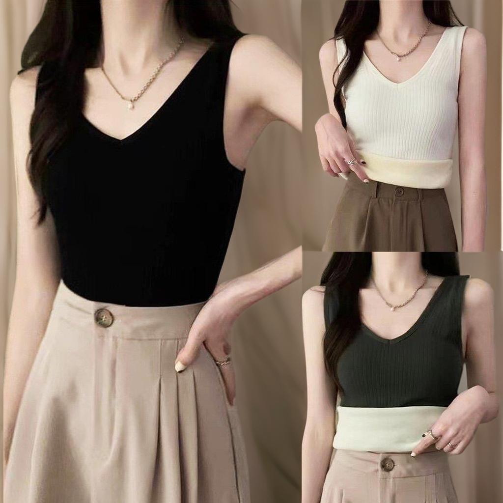 여자 다크컬러 V넥 슬림핏 슬렌더 민소매