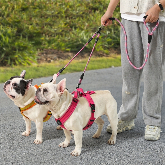두마리를 한번에 더블 강아지 산책 핑크 리드줄