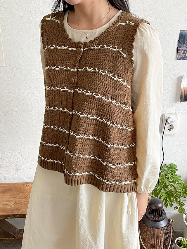 빅사이즈 55-99 셋터 빈티지 스트라이프 펀칭 니트 조끼 가디건