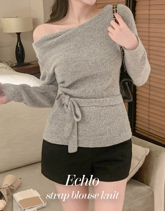 에끌로 스트랩 블라우스 니트(오프숄더/슬림핏/여리핏/세미크롭/페미닌룩/데일리룩/데이트룩/소개팅룩/오피스룩)