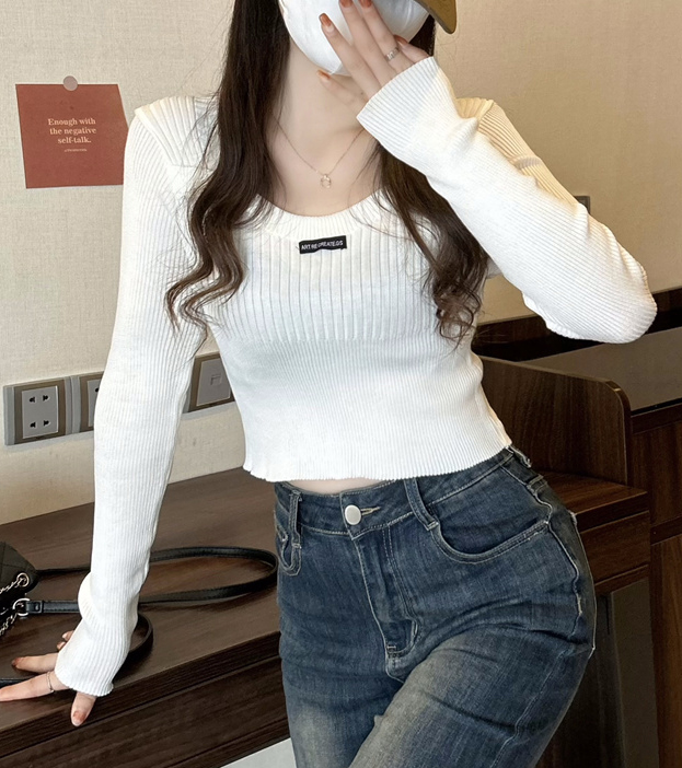 [인생니트/홍대룩] U넥 골지 여친룩 스트릿 슬림핏 긴소매 크롭 니트 티셔츠