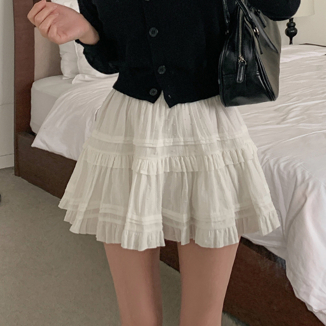 [봄신상🌺] 레이스 프릴 밴딩 화이트 미니스커트
