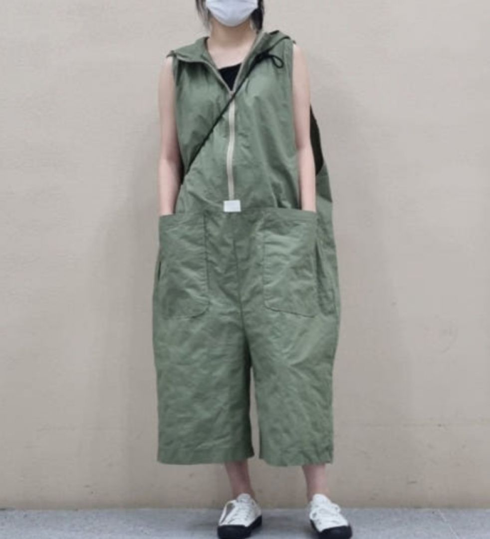 빅사이즈 지퍼 민소매 후드 점프수트 여행 캠핑룩