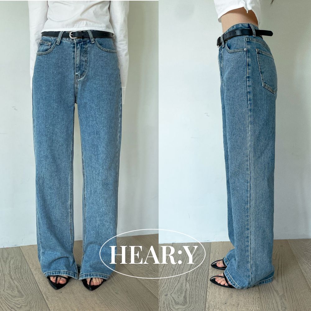 [더히어리 MADE] 하이웨스트 슬릿 세미 와이드 데님 팬츠 연청 진청