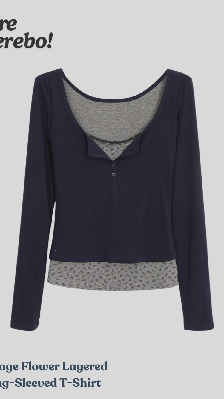 빈티지 플라워 레이어드 긴팔 티