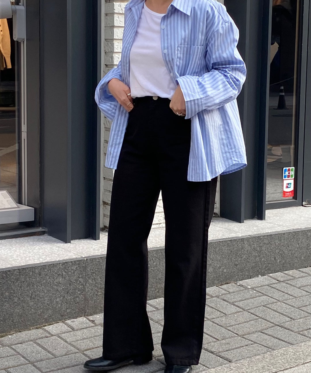 키작녀바지 블랙 코튼 세미와이드 일자핏 팬츠