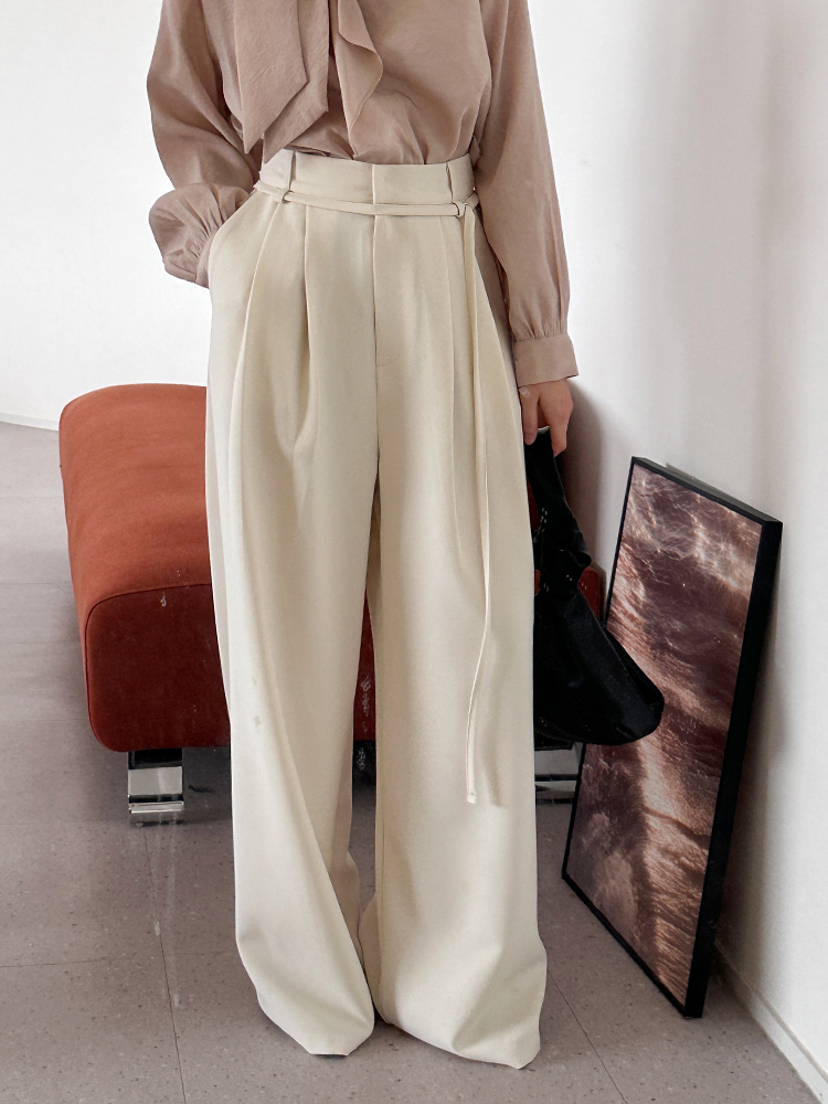 티어스 스트랩 벨트 핀턱 와이드 봄 슬랙스