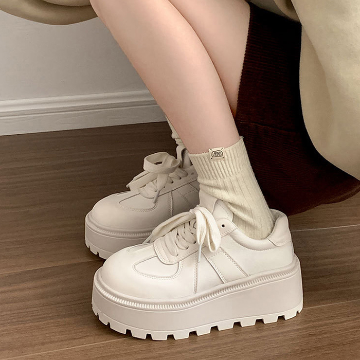 5.5cm 라인 플랫폼 화이트 스니커즈