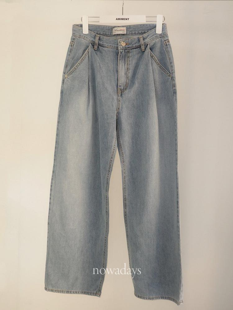 [BIG SALE] S 당일 / 아미먼트 밀러 핀턱 데님 팬츠 코튼 일자 와이드 연청 청바지