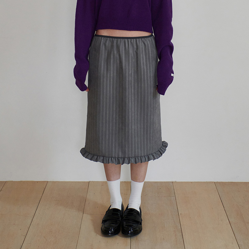 스트라이프 프릴 미디 스커트 (3color) (치마 스커트 미디스커트 빈티지 프릴스커트 여리핏 꾸안꾸 여리)