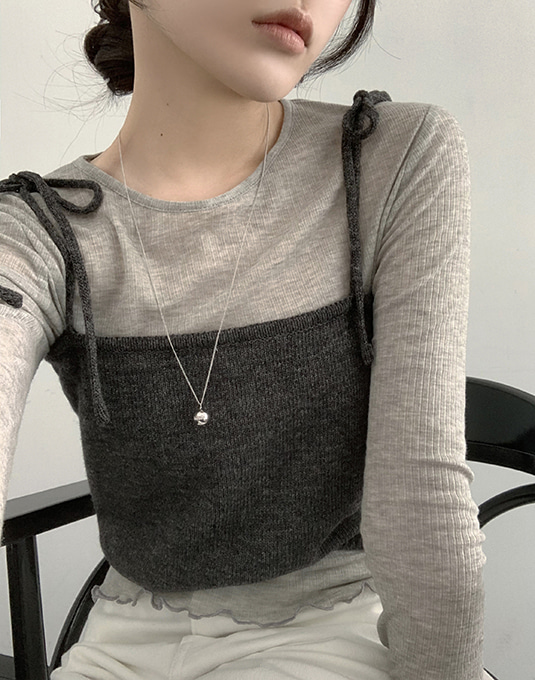 [OVM/울50] 말리 리본 뷔스티에 니트 탑
