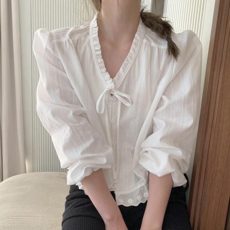 25SS 멜라운지 마그넷 블라우스 레이스 프릴 블라우스