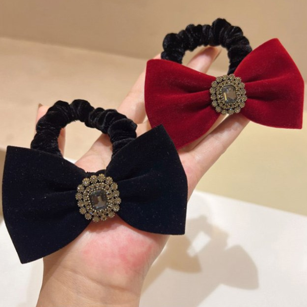 중세풍 왕리본끈 빨간색 벨벳스크런치 큐빅