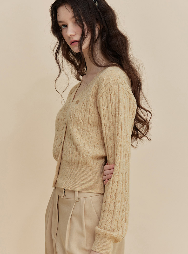 [송수이착용] 젠티 꽈배기 브이넥 심볼 가디건
