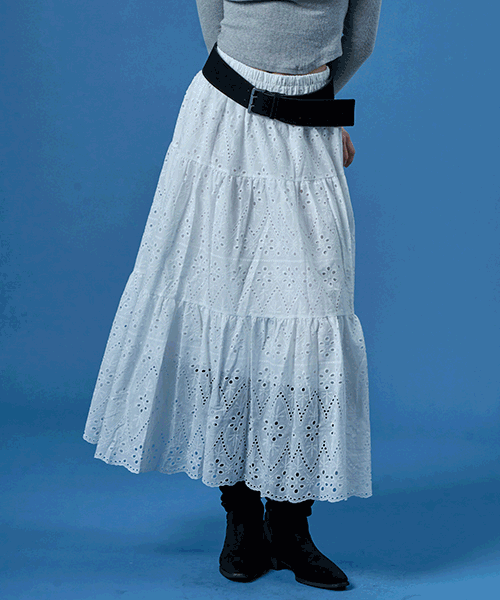 [아일릿 원희착용] 레이스 자수 플라워 플레어 롱스커트 [WHITE] KCL.