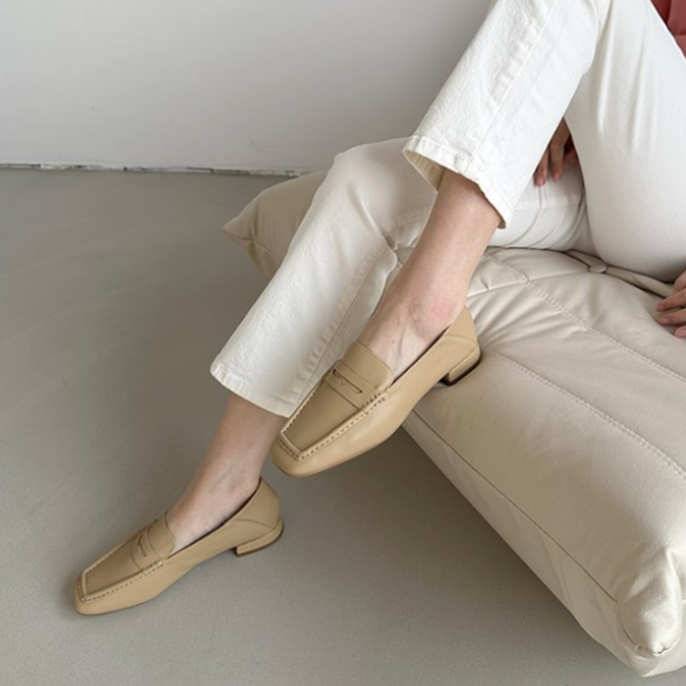 스퀘어 검정단화 기본 무광 가죽로퍼 단정한신발