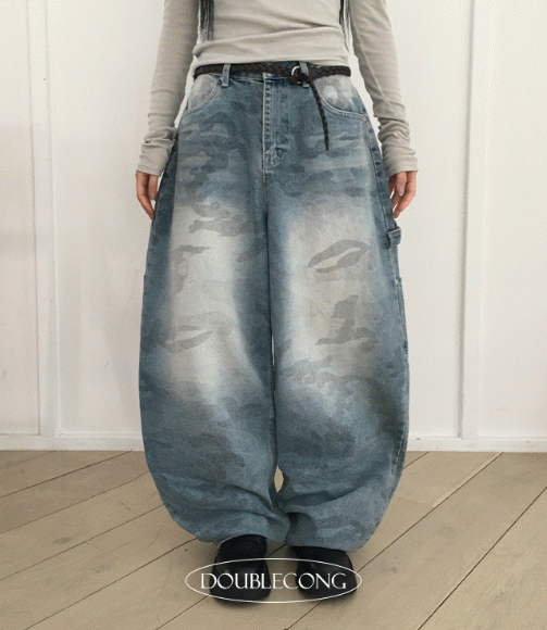 [유니크/카펜더]카모 와이드 중청 팬츠
