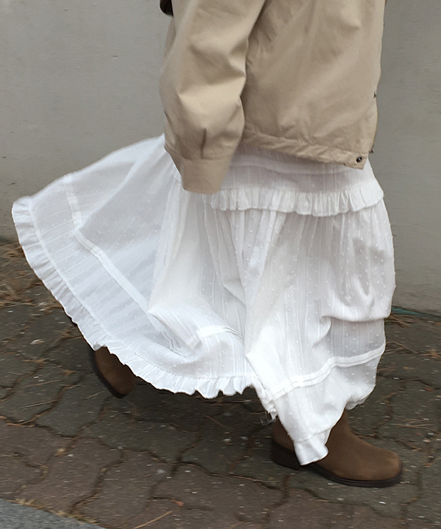 글리츠 팝콘 프릴 레이스 캉캉 롱 스커트