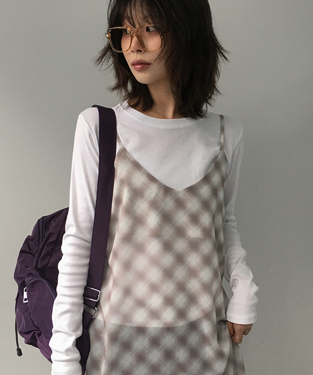 휘임 시스루 레이어드 체크 나시 원피스 (끈조절 가능)