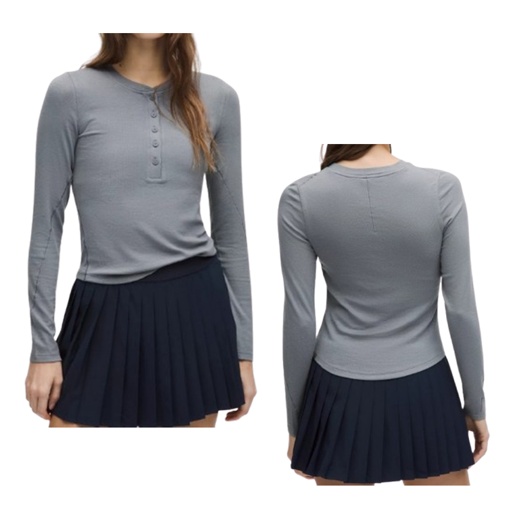 룰루레몬 상의 타이트 헨리넥 긴팔 티셔츠 그레이