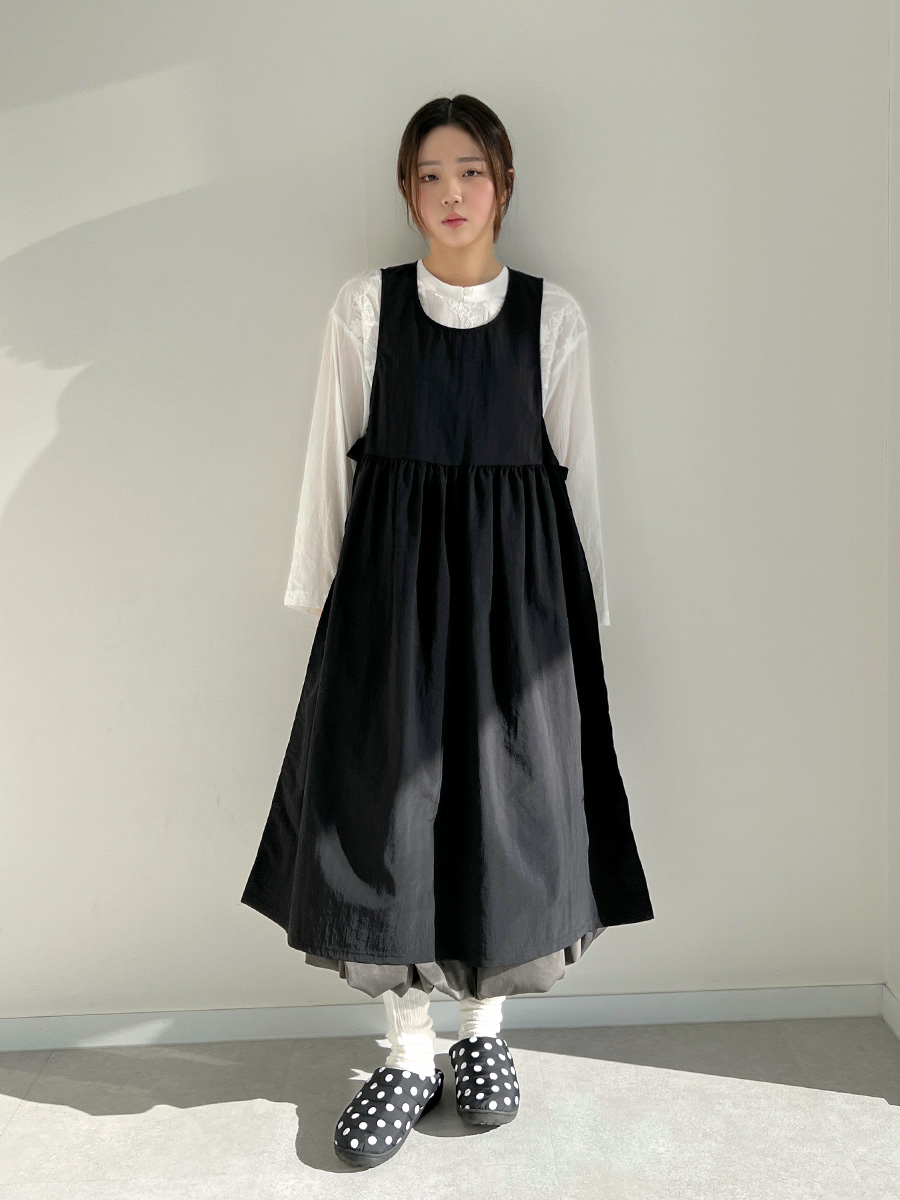 [라스트특가!/직진배송세일/레이어드원피스/시즌오프/할인] 바스락 에이프런 레이어드 롱 원피스 (2color)