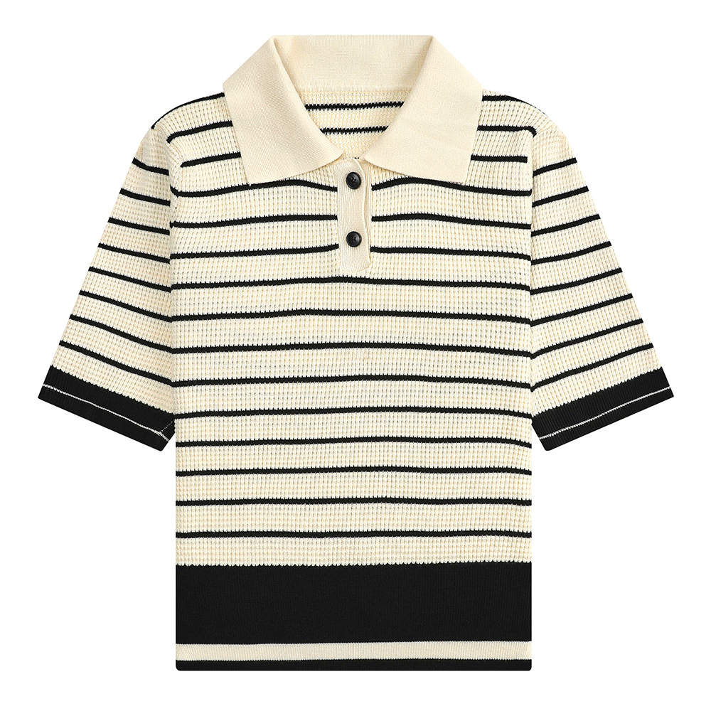 배색 스트라이프 카라 반팔 니트(VIUCD2965)