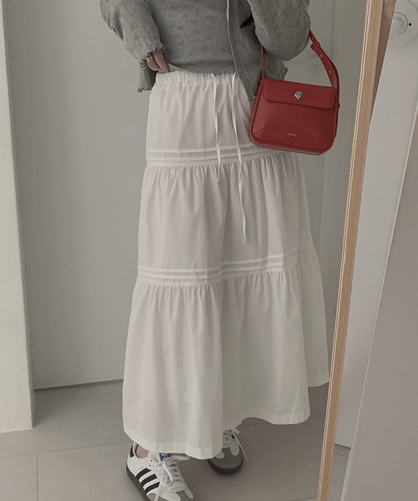 #13095 코튼 A라인 핀턱 밴딩 롱스커트 : 크림,블랙 2color