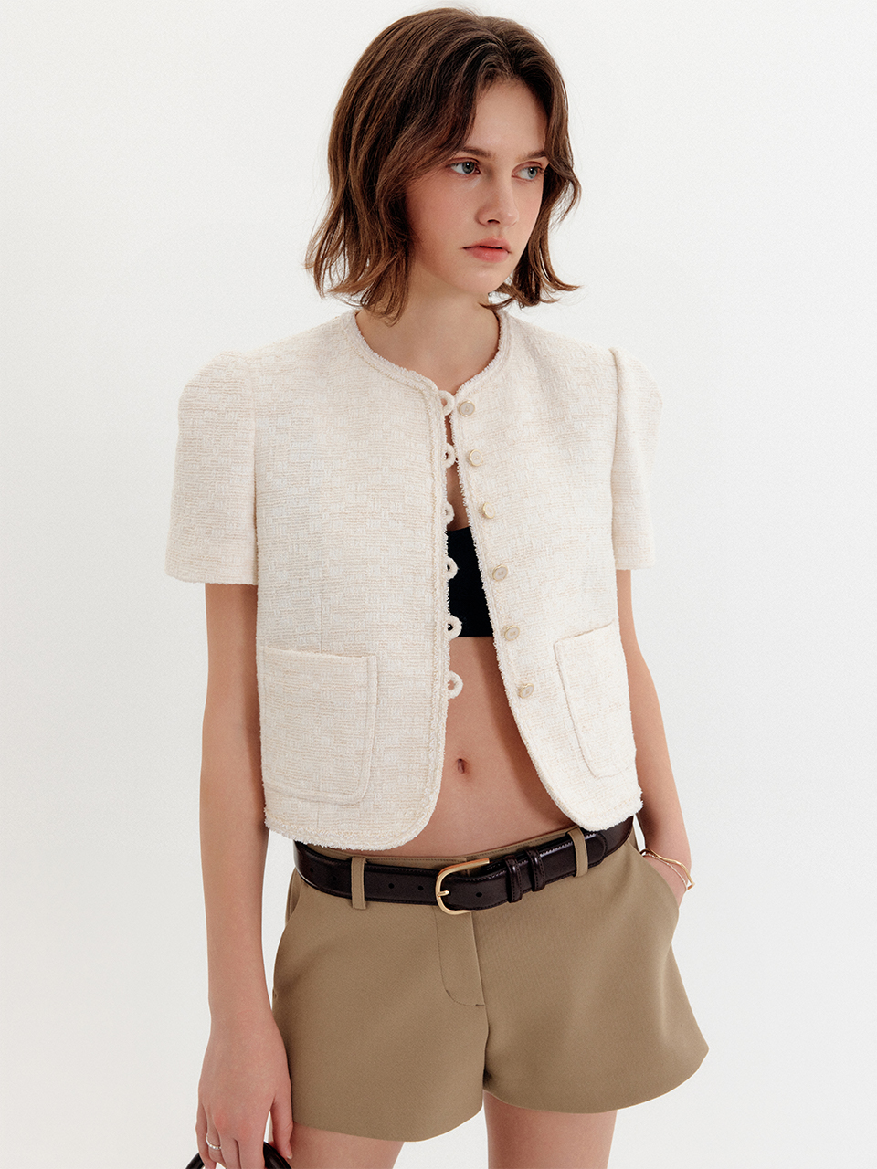 프레야 트리밍 트위드 자켓_아이보리 / FREYA TRIMMING TWEED JACKET_IVORY