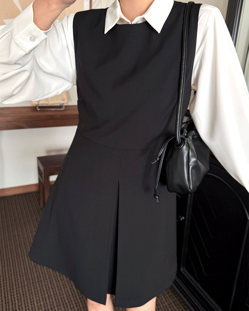 [55~110]봄/신상/하객룩/출근룩/데이트룩/격식룩/상견례룩/오피스룩/빅사이즈/110사이즈/고급스러운/A라인 레베쥬나시핀턱미니원피스