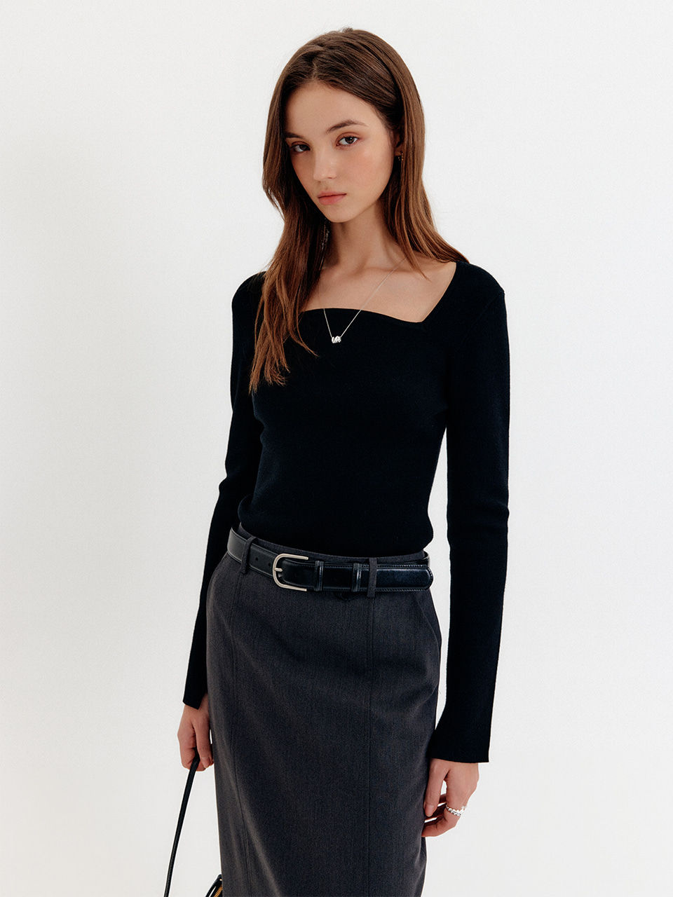 다나 스퀘어 넥 슬림 니트 탑 / DANA SQUARE NECK SLIM KNIT TOP_2colors