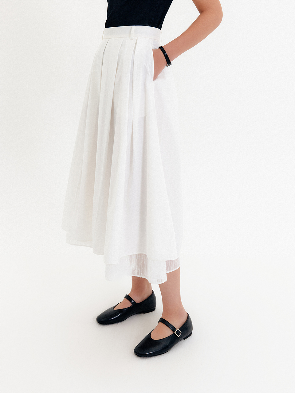 아일라 롱 플레어 스커트_화이트 / AYLA LONG FLARE SKIRT_WHITE