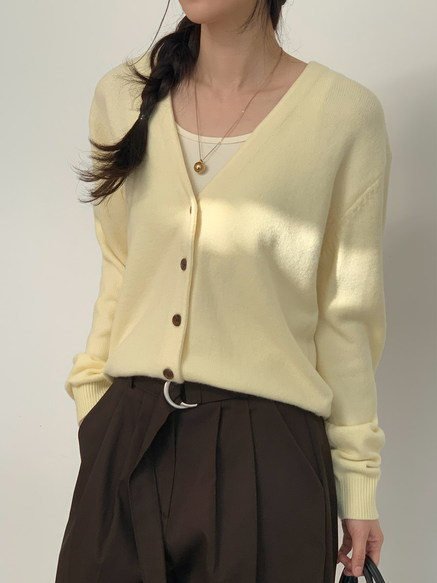 [당일배송] 리디온 울 브이넥 루즈핏 봄 컬러 세미크롭 가디건 6color
