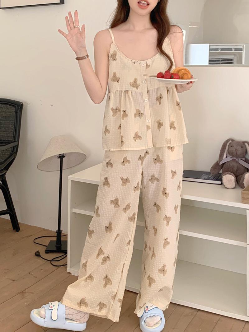 (곰돌이끈나시잠옷세트) 여자잠옷 봄 여름 파자마세트 투피스 수유 홈웨어 단추
