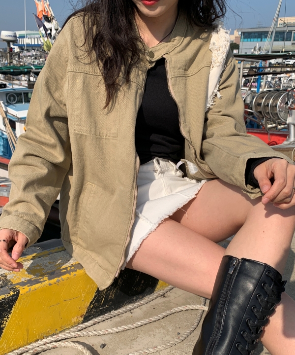 [느좋템✨] 초코밤 빈티지 노카라 바이커 오버핏 봄 코튼자켓 블루종 야상 2 color