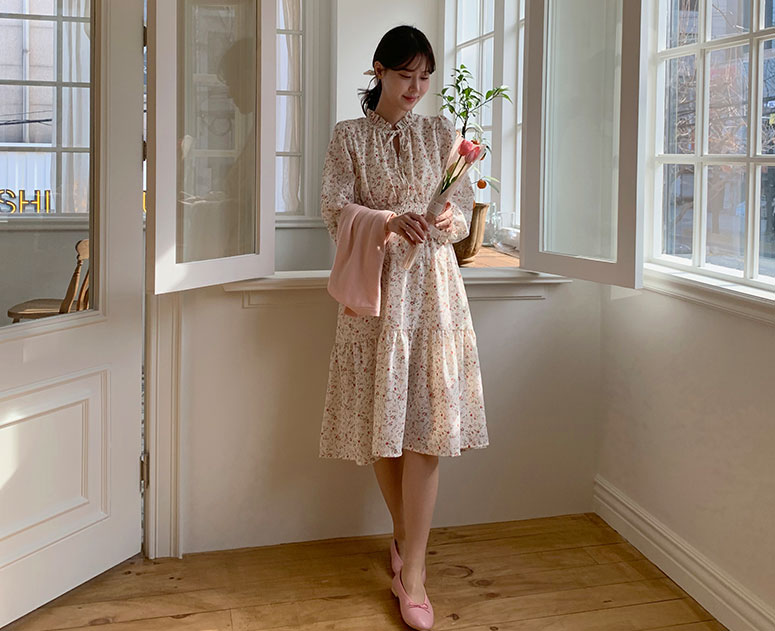 임부복*작은꽃 프릴넥 원피스