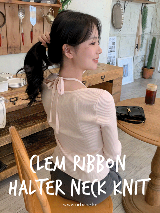 💕URBANE MADE💕 클렘 리본 홀터넥 니트 (블랙제외당일 4c)