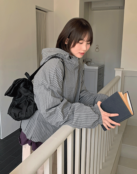 [unisex] 덴코니 체크 스트링 오버 윈드 점퍼 (4color)