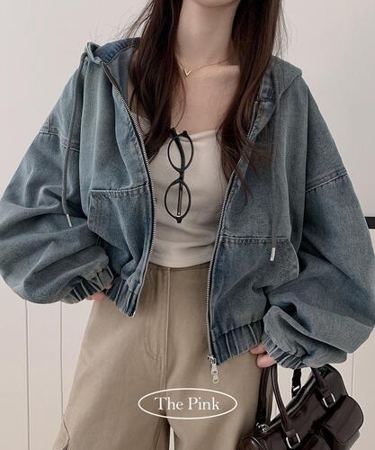 [유니크힙!/봄아우터/핏존예] 머즈 루즈핏 세미크롭 투웨이 후드 데님 자켓 (3color)