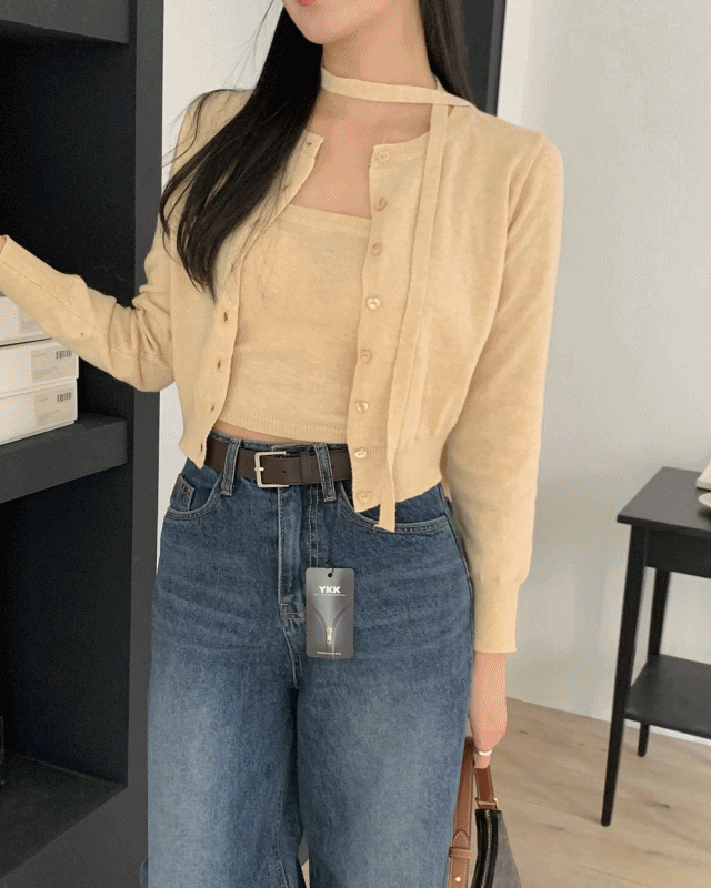 [나시set] 루비에 캐시미어 크롭 타이 니트 가디건 세트 (5 color)