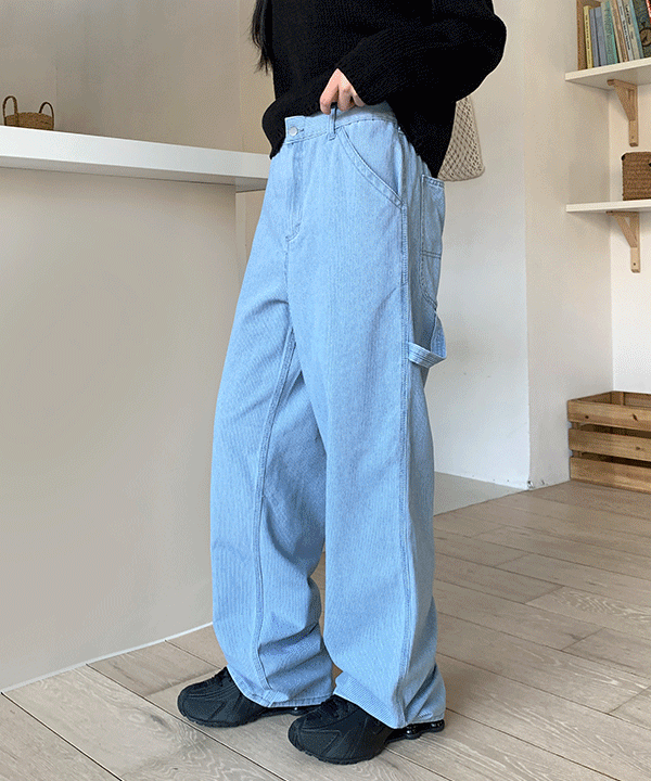 마테린 카펜터 뒷밴딩 스트라이프 와이드 팬츠